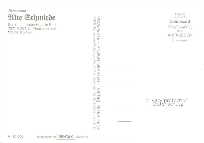 72494282 Rust Burgenland Restaurant Alte Schmiede postalisch nicht gelaufen Erhaltung siehe scans KatCode: 11390112010201
