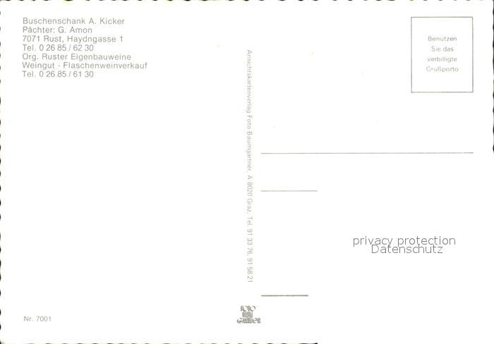 72415777 Rust Burgenland Weingut Kicker postalisch nicht gelaufen Erhaltung siehe scans KatCode: 11390112010201