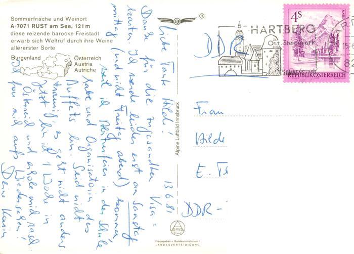 73904800 alte Postkarte Rust Neusiedlersee Burgenland Panorama Weinort postalisch gelaufen Fliegeraufnahme Erhaltung siehe scans [FriedD77] KatCode: 11390112010201