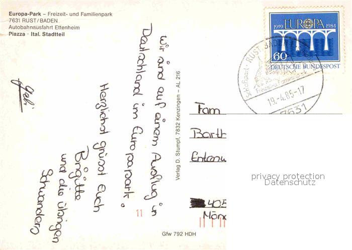 72730616 alte Postkarte Rust Ortenaukreis Europa Park postalisch gelaufen Erhaltung siehe scans [AndreD76] KatCode: 11110008317114