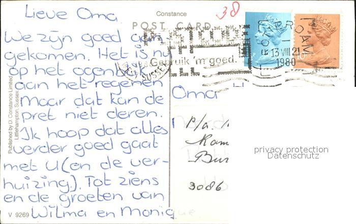 old postcard Rustington Arun Strand Gebaeude postalisch gelaufen Erhaltung siehe scans