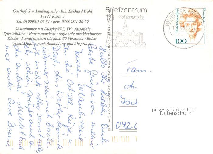 73666854 alte Postkarte Rustow-Loitz Vorpommern Gasthof Zur Lindenquelle Gaststube Zimmer Garten postalisch gelaufen Erhaltung siehe scans [WerneD78] KatCode: 11110013052049