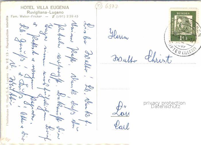 12729273 alte Postkarte Ruvigliana Hotel Villa Eugenia postalisch gelaufen Erhaltung siehe scans [WerneD78] KatCode: 11470210665288