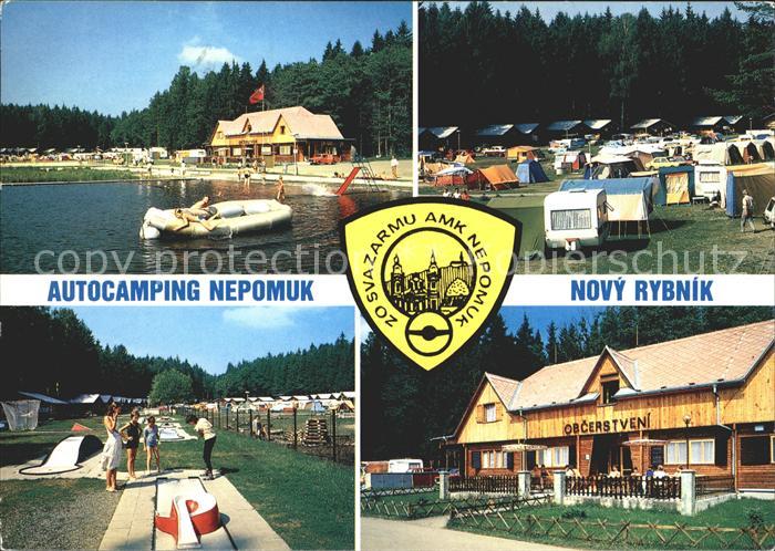 old postcard Rybnik Tschechische Republik Camping Nepomuk Minigolf postalisch gelaufen Erhaltung siehe scans