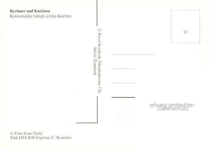 Rychnov nad Kneznou Kolowratsky zamek a reka Knezna Schloss postalisch nicht gelaufen Erhaltung siehe scans [FriedD77]