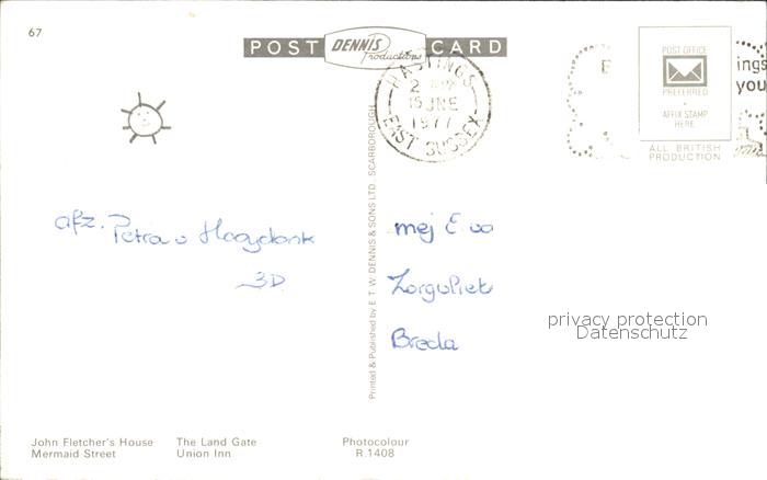 old postcard Rye East Sussex John Fletchers House Land Gate Mermaid Street postalisch gelaufen Erhaltung siehe scans