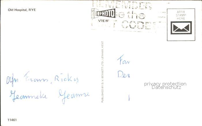 old postcard Rye East Sussex Old Hospital postalisch gelaufen Erhaltung siehe scans