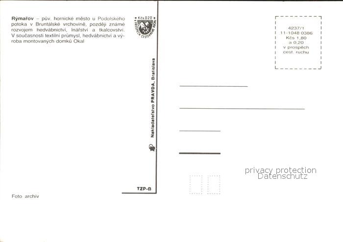 Rymarov Roemerstadt Mesto u Podolskeho v Bruntalske vrhcovine V soucasnosti textilni prumysl hedavabnictvi a vyroba montovanych domku Okal postalisch nicht gelaufen Erhaltung siehe scans