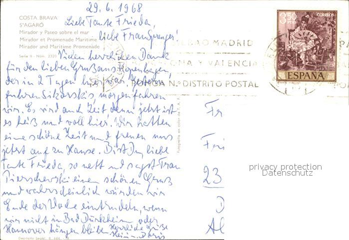 old postcard S Agaro Hotel Mirador y Paseo sobre el mar Promenade postalisch gelaufen Erhaltung siehe scans