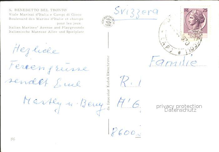 old postcard S. Benedetto del Tronto Italienische Matrose Allee und Spielpltz postalisch gelaufen Erhaltung siehe scans