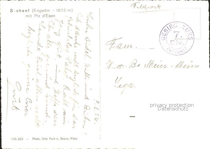 11651346 alte Postkarte S-chanf mit Piz d`Esen postalisch gelaufen Erhaltung siehe scans KatCode: 11470100335224