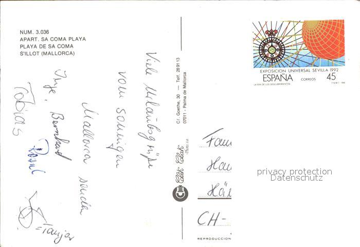old postcard S Illot Apart Sa Coma Playa Swimmingpool Panorama postalisch gelaufen Erhaltung siehe scans