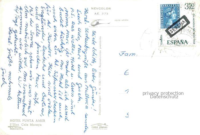 74132404 old postcard S Illot Sant Llorenc Mallorca ES Hotel Punta Amer vista aérea postalisch gelaufen Fliegeraufnahme Erhaltung siehe scans [FriedD77] KatCode: 11510