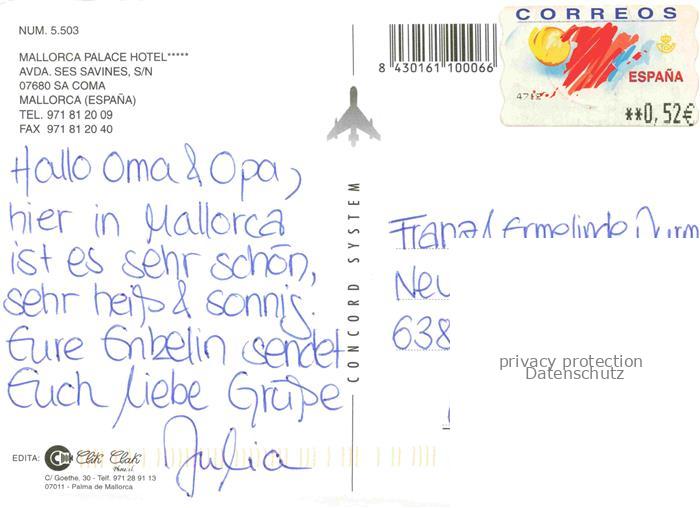 74005699 old postcard Sa Coma Mallorca ES Mallorca Palace Hotel Panorama Schwimmbad postalisch gelaufen Erhaltung siehe scans [WerneD78] KatCode: 11510