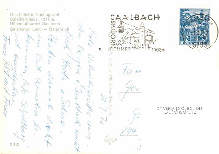 72619619 alte Postkarte Saalbach-Hinterglemm Ausflugsziel Spielberghaus postalisch gelaufen Erhaltung siehe scans [FriedD77] KatCode: 11390322050618