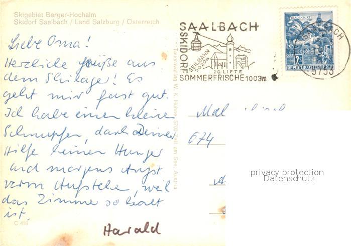 73125928 alte Postkarte Saalbach-Hinterglemm Berger-Hochalm Weisser Baerenkopf Gernkogel postalisch gelaufen Erhaltung siehe scans [NatalD47] KatCode: 11390322050618