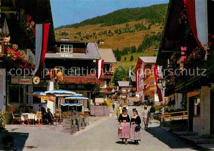 72883420 alte Postkarte Saalbach-Hinterglemm Dorfstrasse Tracht postalisch gelaufen Erhaltung siehe scans [LiesaD40] KatCode: 11390322050618