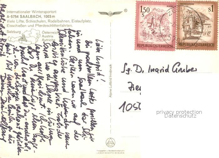73086517 alte Postkarte Saalbach-Hinterglemm Fliegeraufnahme postalisch gelaufen Erhaltung siehe scans [PaolaD17] KatCode: 11390322050618