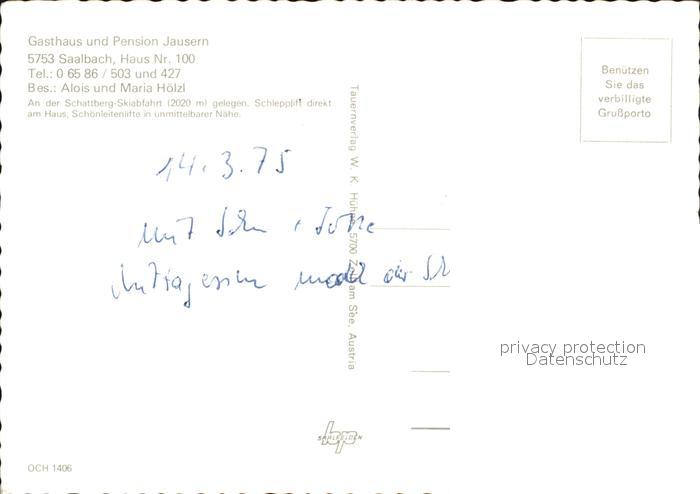 72597758 Saalbach-Hinterglemm Gasthaus Jausern Skigebiet postalisch nicht gelaufen Erhaltung siehe scans [LiesaD40] KatCode: 11390322050618