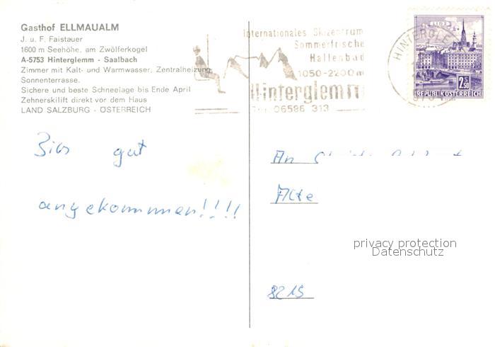 13009086 alte Postkarte Saalbach-Hinterglemm Gasthof Ellmaualm postalisch gelaufen Erhaltung siehe scans [NatalD47] KatCode: 11390322050618