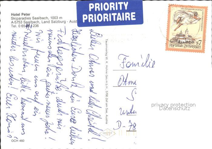 72229230 alte Postkarte Saalbach-Hinterglemm Hotel Peter postalisch gelaufen Erhaltung siehe scans KatCode: 11390322050618