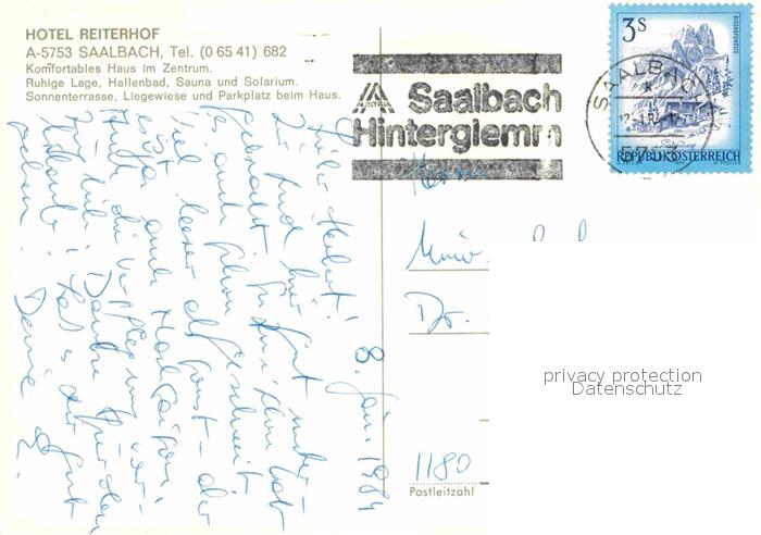 72905518 alte Postkarte Saalbach-Hinterglemm Hotel Reiterhof postalisch gelaufen Erhaltung siehe scans [NatalD47] KatCode: 11390322050618