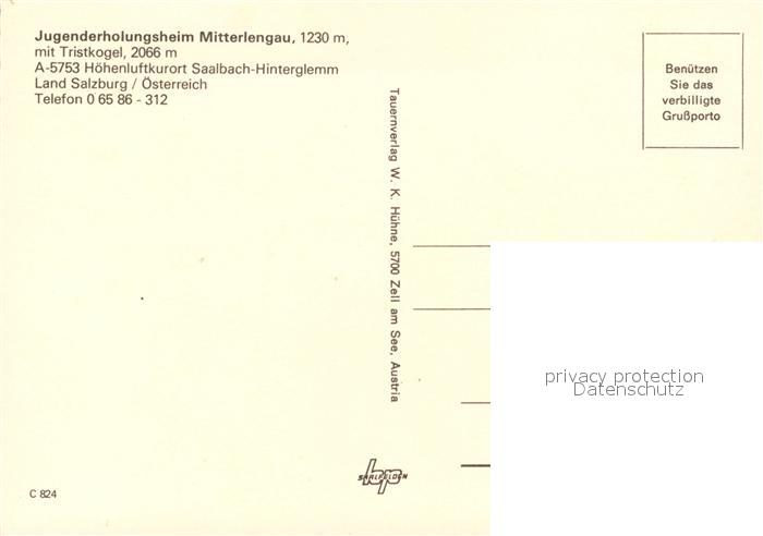 73586981 Saalbach-Hinterglemm Jugenderholungsheim Mitterlengau postalisch nicht gelaufen Erhaltung siehe scans [PaolaD17] KatCode: 11390322050618