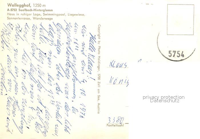 73526785 Saalbach-Hinterglemm Jugenderholungsheim Wallegghof Swimming Pool Allgaeuer Alpen postalisch nicht gelaufen Erhaltung siehe scans [FriedD77] KatCode: 11390322050618