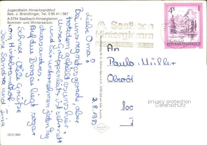 71986334 alte Postkarte Saalbach-Hinterglemm Jugendheim Hinterbrandthof postalisch gelaufen Erhaltung siehe scans KatCode: 11390322050618