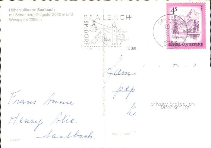 72092231 alte Postkarte Saalbach-Hinterglemm mit Schattberg Ost und Westgipfel postalisch gelaufen Erhaltung siehe scans KatCode: 11390322050618