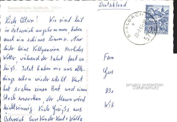 71930030 alte Postkarte Saalbach-Hinterglemm mit Schattbergseilbahn postalisch gelaufen Erhaltung siehe scans KatCode: 11390322050618