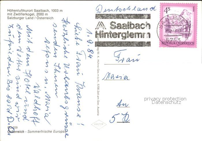 72578660 alte Postkarte Saalbach-Hinterglemm mit Zwoelferkogel postalisch gelaufen Erhaltung siehe scans [LiesaD40] KatCode: 11390322050618