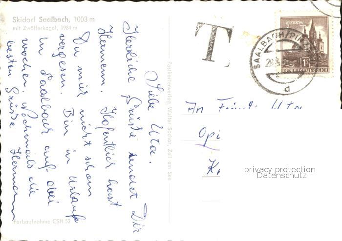 72499075 alte Postkarte Saalbach-Hinterglemm mit Zwoelferkogel postalisch gelaufen Erhaltung siehe scans KatCode: 11390322050618