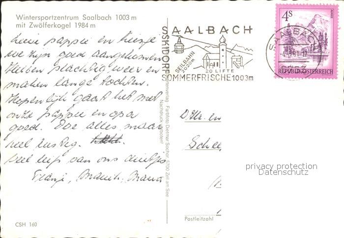 72093113 alte Postkarte Saalbach-Hinterglemm mit Zwoelferkogel postalisch gelaufen KatCode: 11390322050618