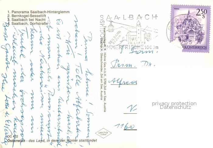 72900455 alte Postkarte Saalbach-Hinterglemm Panorama Bernkogel Sessellift Dorfstrasse postalisch gelaufen Erhaltung siehe scans [FriedD77] KatCode: 11390322050618