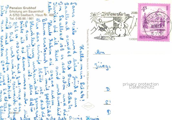 72832182 alte Postkarte Saalbach-Hinterglemm Pension Grubhof postalisch gelaufen Erhaltung siehe scans [LiesaD40] KatCode: 11390322050618