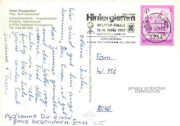 74137611 alte Postkarte Saalbach -Hinterglemm Pinzgau-Pongau AT Hotel Knappenhof postalisch gelaufen Erhaltung siehe scans [WerneD78] KatCode: 11390322050618