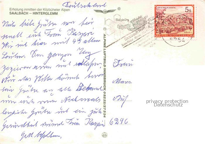 74075360 alte Postkarte Saalbach -Hinterglemm Pinzgau-Pongau AT Panorama Gondelbahn Gasthof Zwoelfer Saalbacher Fassl postalisch gelaufen Erhaltung siehe scans [WerneD78] KatCode: 11390322050618