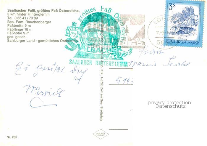 72928952 alte Postkarte Saalbach-Hinterglemm Saalbacher Fass Gaststaette Restaurant Tanz Bergbahn Alpenpanorama postalisch gelaufen Erhaltung siehe scans [FriedD77] KatCode: 11390322050618
