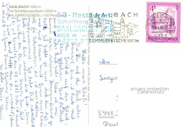 72835101 alte Postkarte Saalbach-Hinterglemm Schamberg Seilbahn Jumbogondel Bergstation Alpenpanorama postalisch gelaufen Erhaltung siehe scans [FriedD77] KatCode: 11390322050618