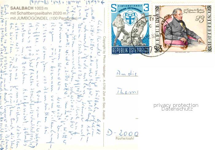 72615517 alte Postkarte Saalbach-Hinterglemm Schattberg Seilbahn Jumbogondel Berg und Talstation postalisch gelaufen Erhaltung siehe scans [WerneD78] KatCode: 11390322050618