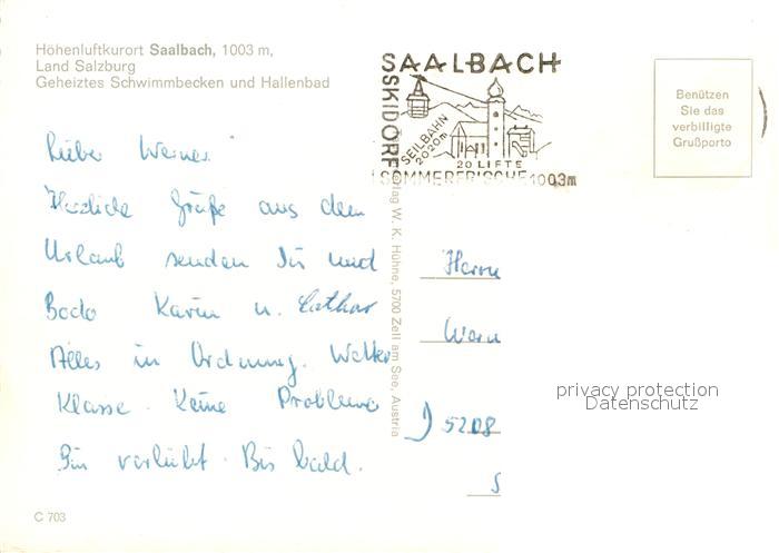 73518731 alte Postkarte Saalbach-Hinterglemm Schwimmbecken Hallenbad postalisch gelaufen Erhaltung siehe scans [KathaD81] KatCode: 11390322050618