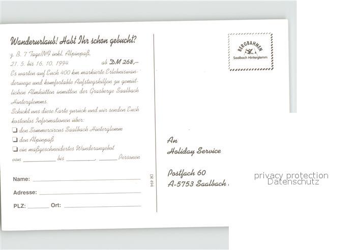 71979002 Saalbach-Hinterglemm Seilbahn postalisch nicht gelaufen Erhaltung siehe scans KatCode: 11390322050618
