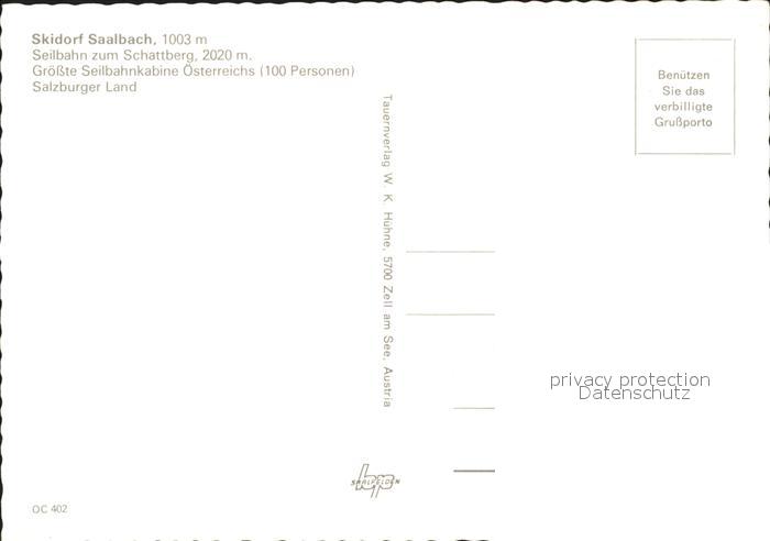 71909983 Saalbach-Hinterglemm Seilbahn Schattberg postalisch nicht gelaufen Erhaltung siehe scans KatCode: 11390322050618