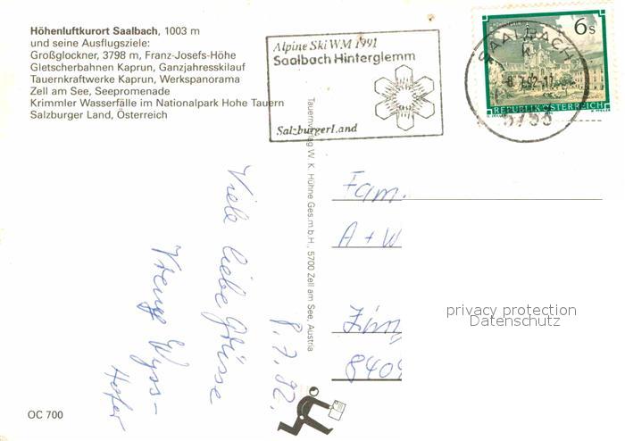 72766151 alte Postkarte Saalbach-Hinterglemm Seilbahn Seepartie Wasserfall postalisch gelaufen Erhaltung siehe scans [LiesaD40] KatCode: 11390322050618