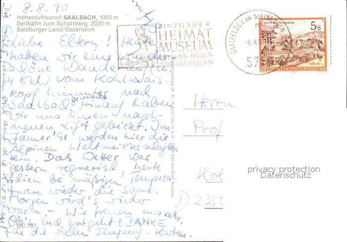 71899377 alte Postkarte Saalbach-Hinterglemm Seilbahn zum Schattberg Hoehenluftkurort Sommerpanorama postalisch gelaufen Erhaltung siehe scans KatCode: 11390322050618