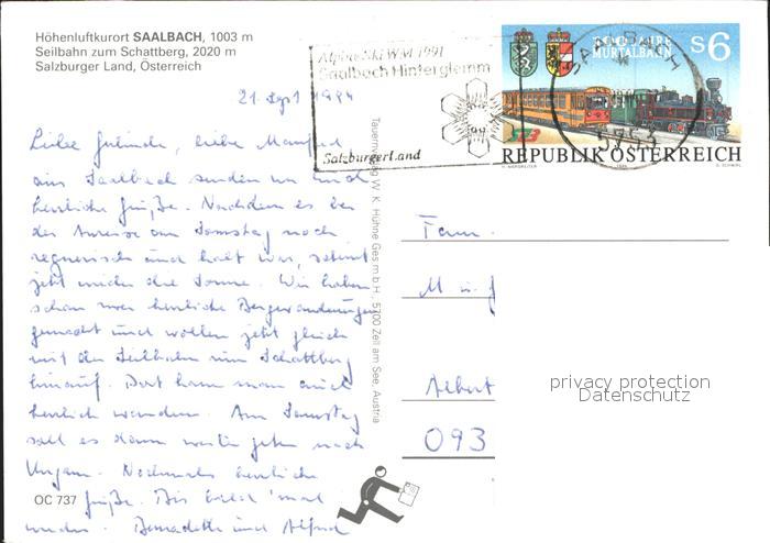 71938759 alte Postkarte Saalbach-Hinterglemm Seilbahn zum Schattberg Panorama Hoehenluftkurort postalisch gelaufen Erhaltung siehe scans KatCode: 11390322050618