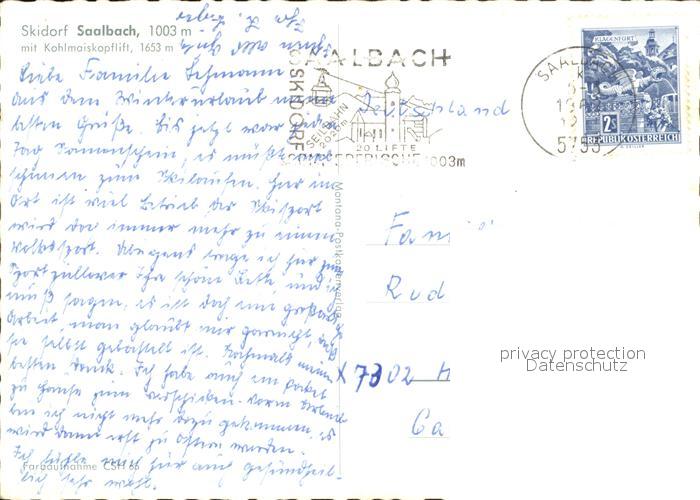 72505565 alte Postkarte Saalbach-Hinterglemm Skidorf Kohlmaiskopflift postalisch gelaufen Erhaltung siehe scans KatCode: 11390322050618