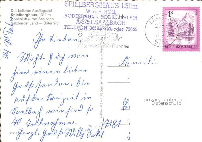 72512730 alte Postkarte Saalbach-Hinterglemm Spielberghaus postalisch gelaufen Erhaltung siehe scans KatCode: 11390322050618