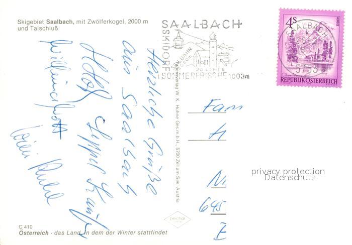73259366 alte Postkarte Saalbach-Hinterglemm Talschluss postalisch gelaufen Erhaltung siehe scans [NatalD47] KatCode: 11390322050618